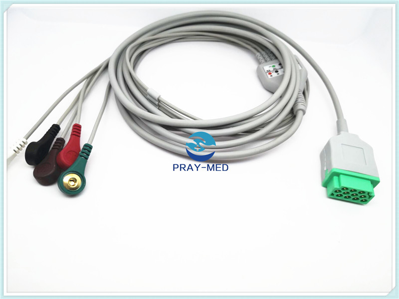 This compatible one-piece ECG cable is for use with the following ECG monitors: Dash 1000, Dash PRO 2000, Dash 2500, Dash PRO 3000, Dash PRO 4000, Dash 5000, Eagle Systems, MAC-Lab, Solar 3000, Solar 8000, Solar 9500, Aestiva/5, Tram 100, Tram 200, Tram 300, Tram 400, Tram 500, Tram 600, Tram 800, Responder 2000, Responder 3000, Corometrics 120, GE Vivid 7 Ultrasound, Datex-Ohmeda E and M Prestin modules and Unity Systems.